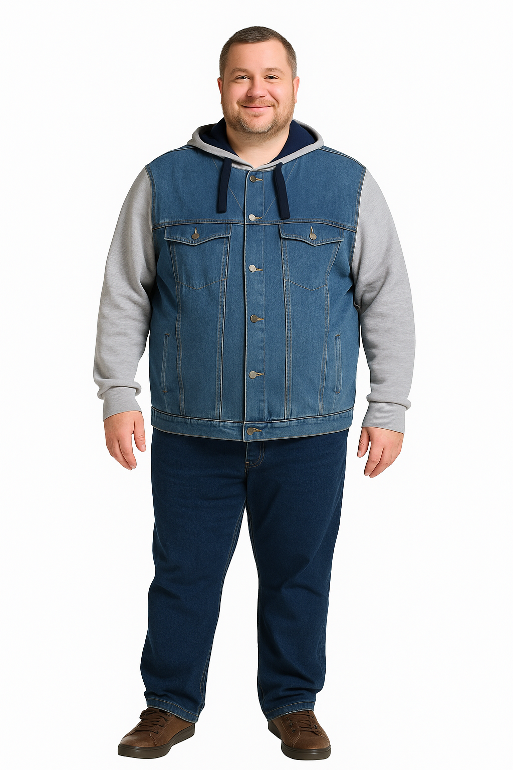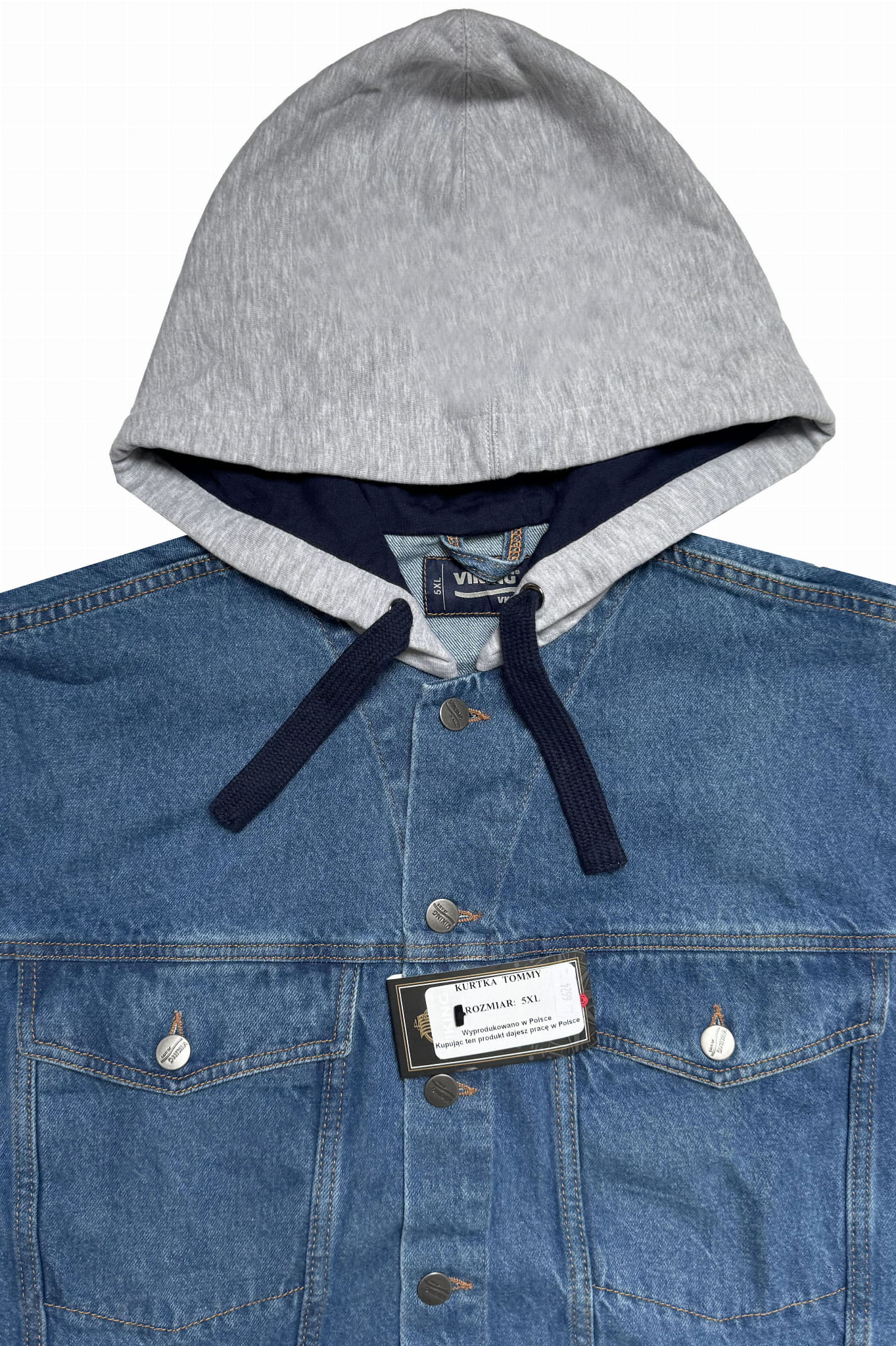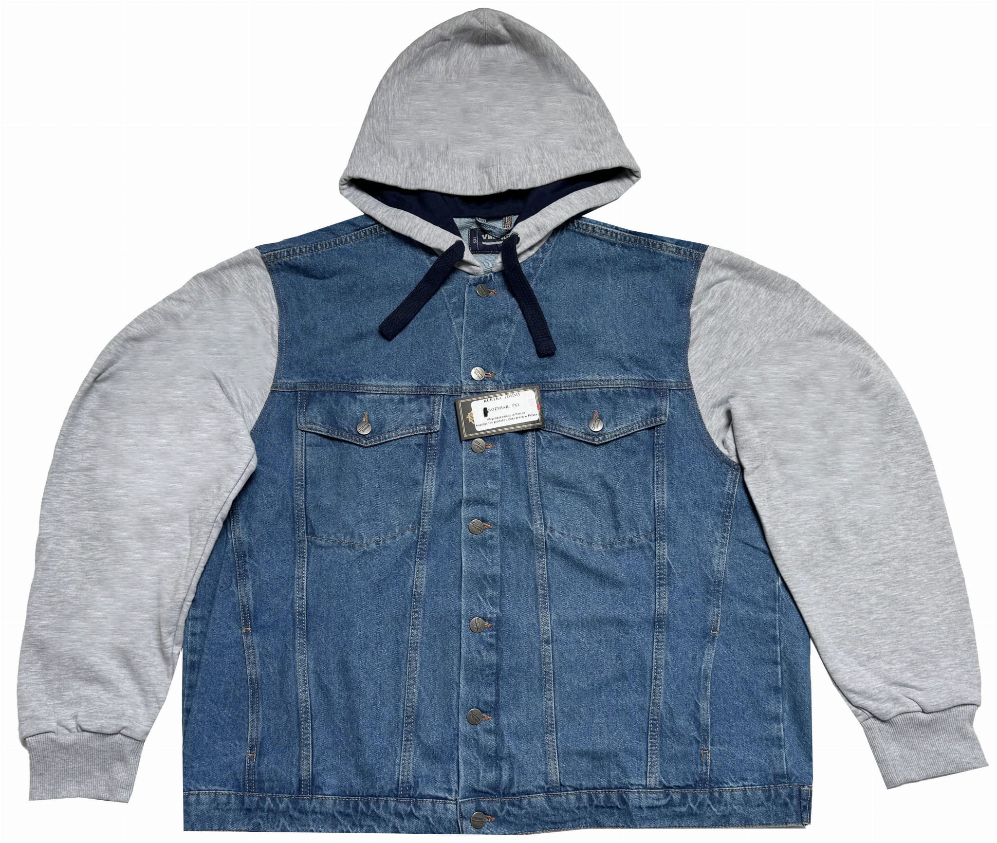 DUŻA MĘSKA KURTKA JEANSOWA Z KAPTUREM - TOMMY (BLUE)