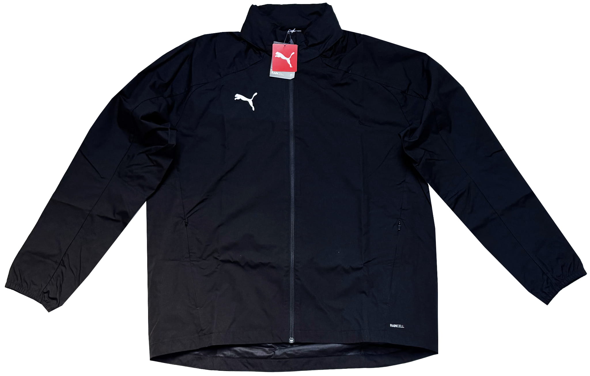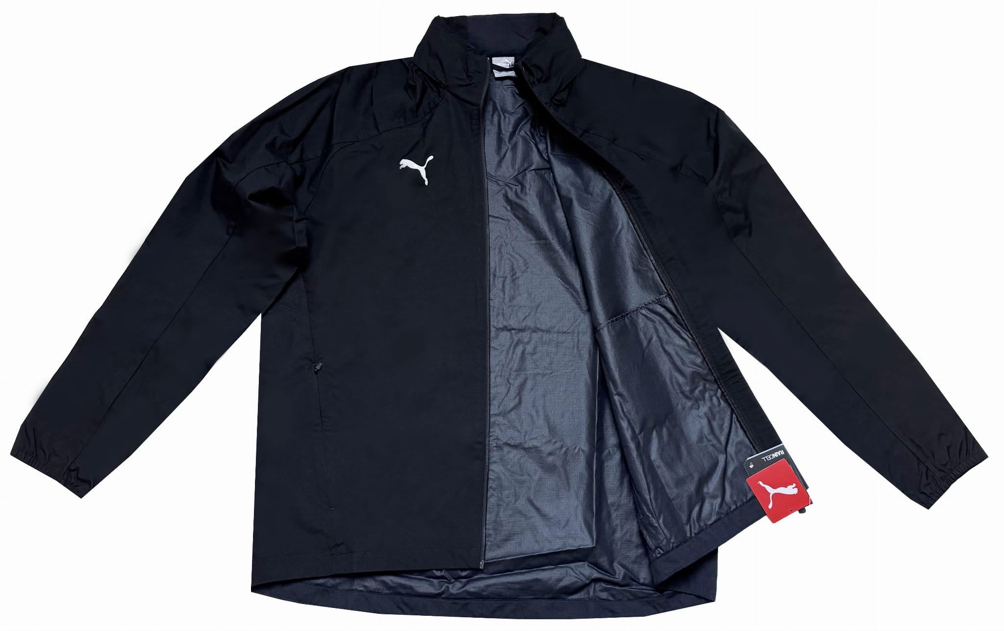 Duża męska kurtka wiatrówka Puma posiada dwie klasyczne kieszenie po bokach,
