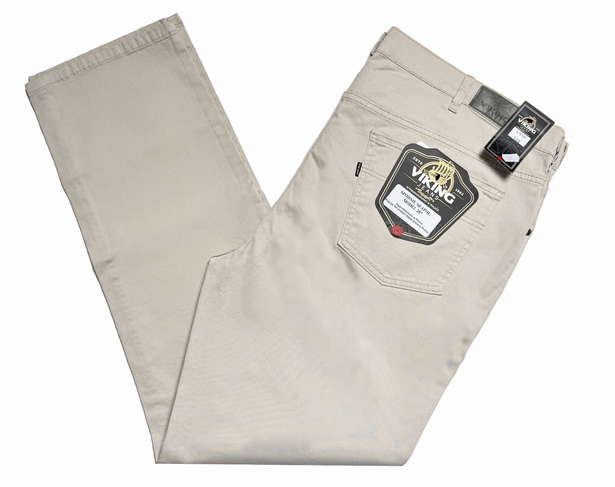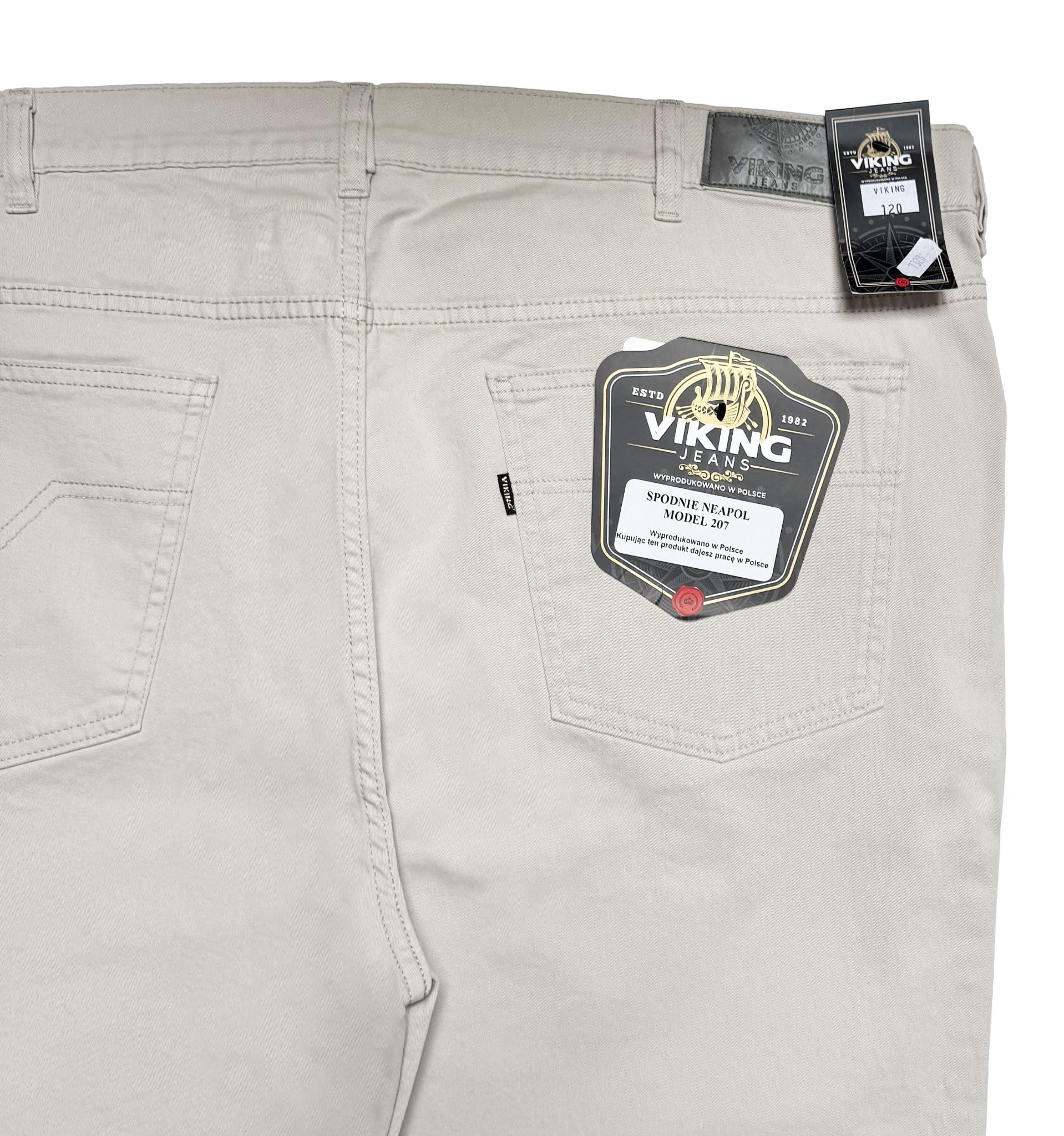 Duże męskie spodnie klasyczne beżowe NEAPOL VIKING
